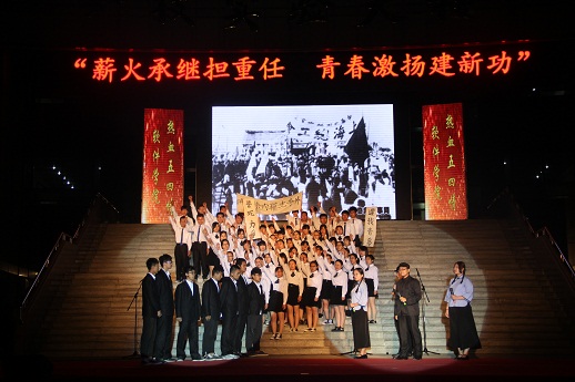晚会以“薪火承继担重任 青春激扬建新功”为主题,共分为“忆五四峥嵘岁月”、“承重任薪火相传”、“看我辈激扬青春”三大篇章。各学院方队依次登台,倾情演出。软件学院朗诵《热血五四情》的同学们个个昂首挺胸,正义的言辞铿锵有力,重现了五四运动时期,以学生为主体开展的示威游行爱国运动。塑造了一个个指点江山,挥斥方遒的热血青年形象,展示了曲园学子自信昂扬、奋发向上的青春魅力。