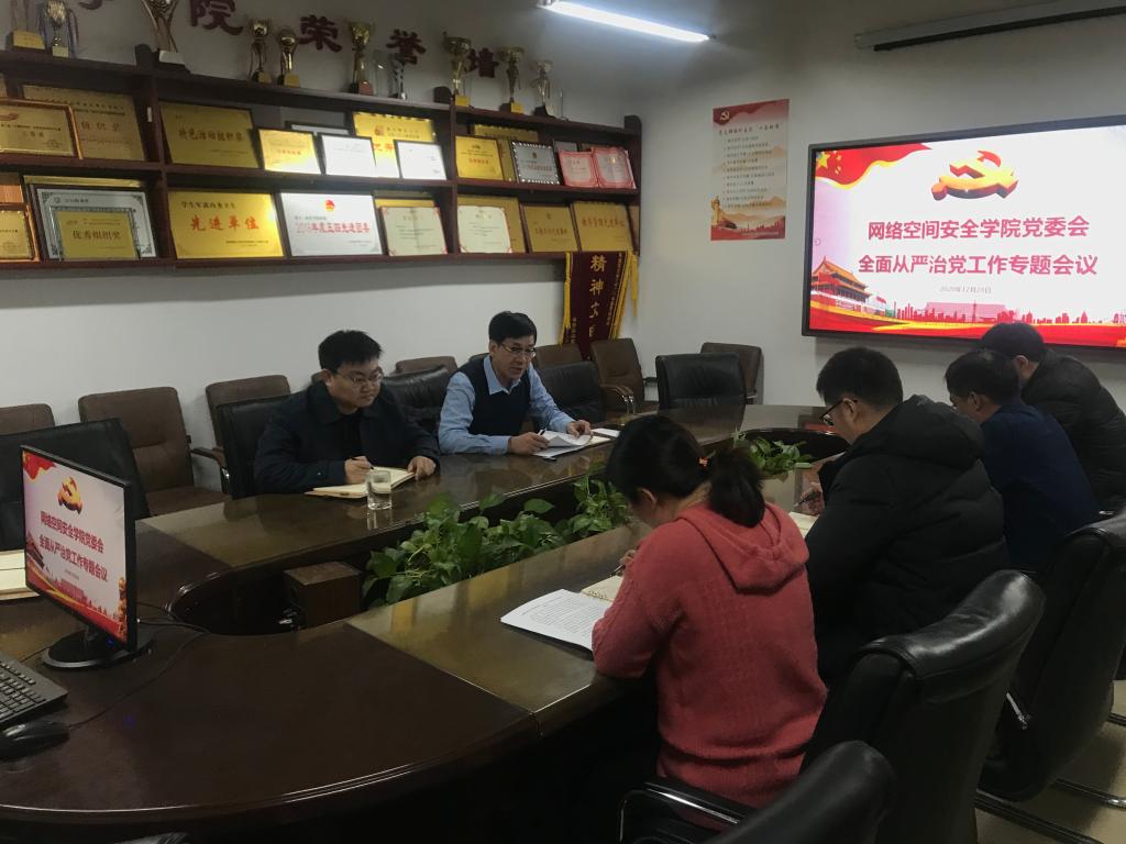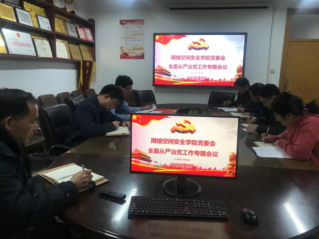 院讯(通讯员:范瑞红)12月28日下午,网络空间安全学院党委召开2020年下半年全面从严治党工作专题会议。学院党委委员参加,会议由学院党委书记田云飞主持。