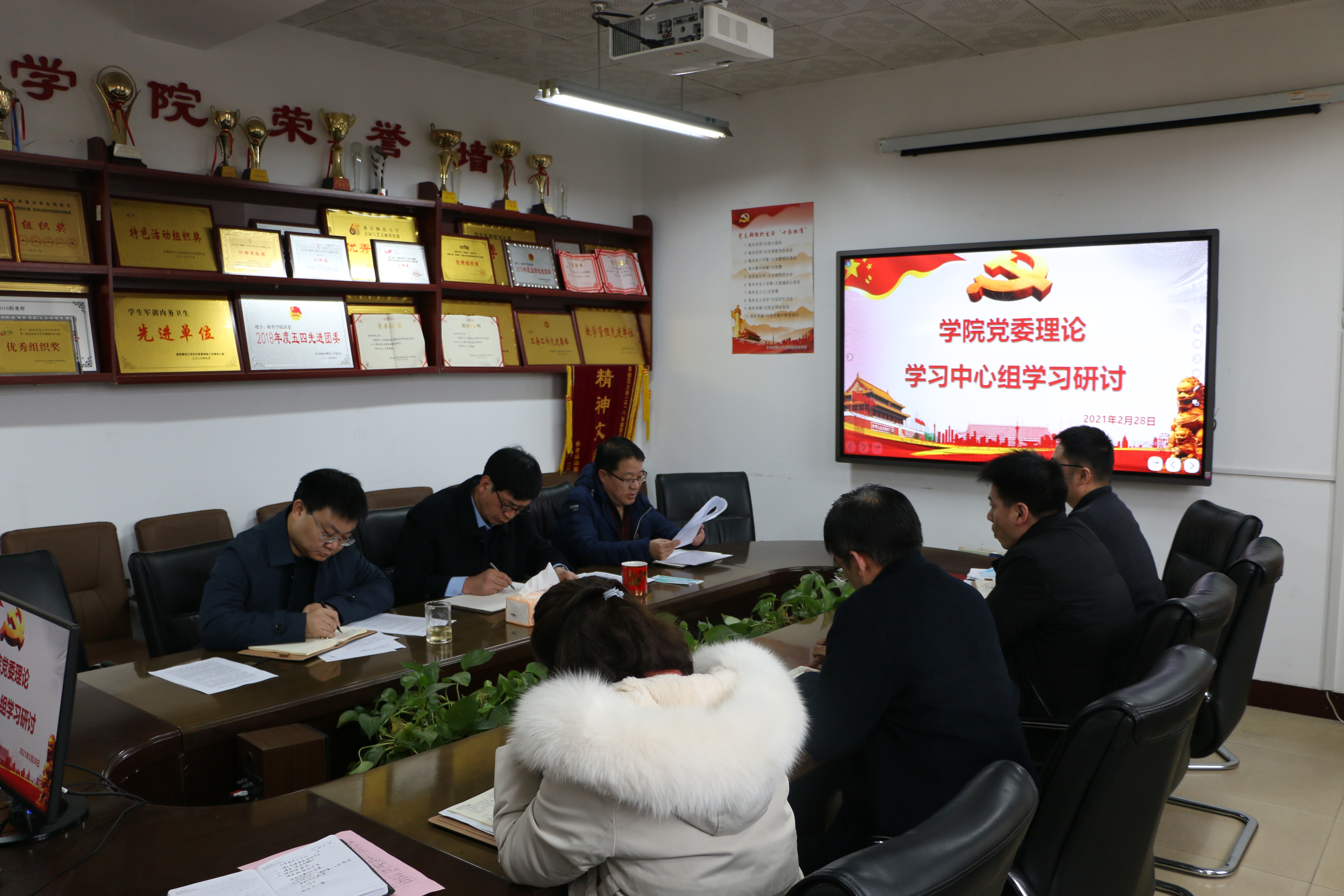 党委理论学习中心组进行了新学期第一次集中学习。认真学习了《习近平总书记在党史学习教育动员大会上的讲话》和《习近平总书记在全国脱贫攻坚总结表彰大会上的讲话》。学院党委书记田云飞主持,中心组成员田云飞、王茂励、田 凯、倪建成、鲁大营、马旭、齐邦强、范瑞红参加了学习。