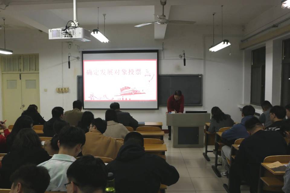本科生党支部召开党员大会,对拟发展对象听取党员意见。本科生党支部书记田凯主持会议,学院党委书记田云飞列席会议,本科生支部党员参加。