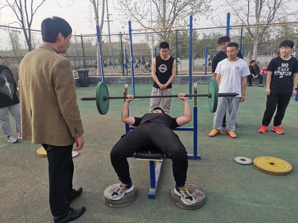 党委书记田云飞、院长王茂励和辅导员们到西操场看望春训的运动员们。