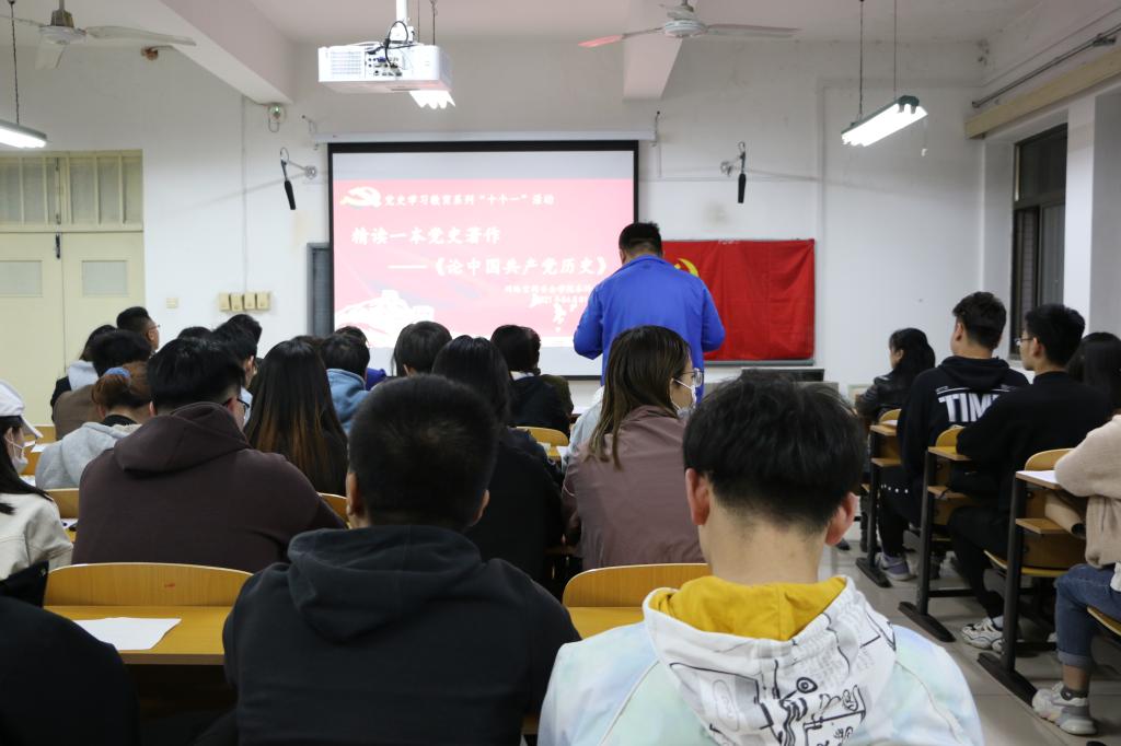 本科生党支部开展精读党史著作活动,活动由学院党委副书记、本科生党支部书记田凯主持,团委书记范瑞红、辅导员洪亚玲、武玉龙、丁允念以及全体党员参加。