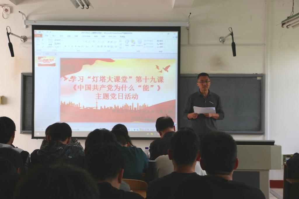 本科生党支部召开主题党日活动,组织支部全体党员学习“灯塔大课堂”第十九课《中国共产党为什么“能”》,本科生党支部书记田凯、团委书记范瑞红、辅导员洪亚玲、武玉龙、丁允念及本科生党支部全体党员参加了会议。