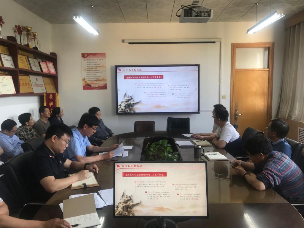 党委书记田云飞以“学党史、知党恩、跟党走”为线索,从毛主席激昂的长征诗篇引出主题,回首漫漫长征路,阐明长征胜利的伟大意义,长征胜利对我们的启示。田云飞讲述了红军在二万五千余里的征途中发生的突破敌四道防线、强渡乌江、占领遵义、四渡赤水、巧渡金沙江、爬雪山、过草地、陕北吴起会师、甘肃会宁会师等重要战役和事件。要求全体党员要从整个长征历程中汲取精神养分,学习长征精神,不忘初心,走好新时代的长征路。