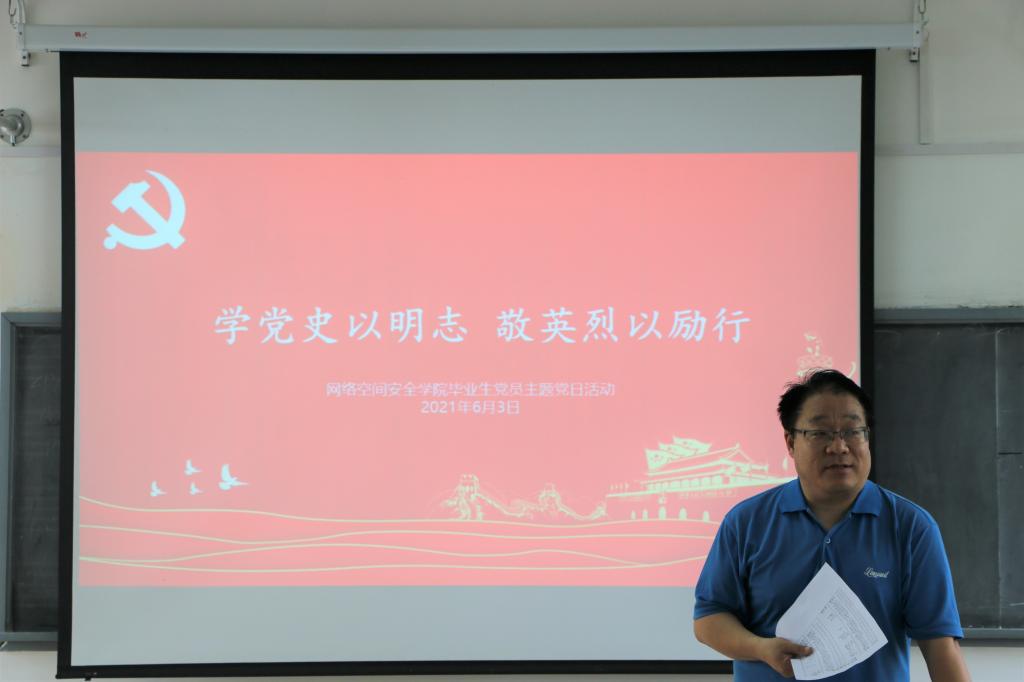 院讯(通讯员:丁允念、姚海源)6月3日上午9:00,学院本科生党支部在体育教学部228教室举行以“学党史以明志,敬英烈以励行”为主题的党日活动。党委副书记田凯、辅导员丁允念以及全体毕业生党员参加此次活动。活动由党委副书记田凯同志主持。