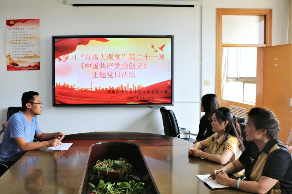 本科生党支部在410会议室开展了主题党日活动,学习“灯塔大课堂”第二十一课《中国共产党的创立》。本次主题党日活动由辅导员武玉龙主持,团委书记范瑞红、辅导员洪亚玲以及本科生党员参加了本次活动。
