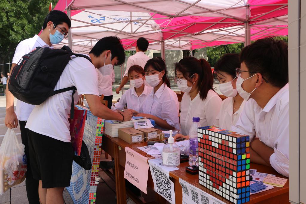 推出个性化的迎新方案,制作由魔方拼接的院徽,举行“一生一本”、“一生一卡”、“一生一特色”、“剪纸送祝福”等特色活动。其中“一生一本”活动是一个新生一个定制的学习日志,上附学院领导寄语和“五个十”学习拓展计划,为新生提供学业指导,将人文素养提升和课程思政建设相结合;“一生一卡”活动是一个新生一张印有学院院徽的书签卡片并在现场打卡盖章,一个宿舍一张带有老生祝福的卡片,通过小小的卡片,打造温馨温情充满浓浓人文关怀的迎新接待氛围。新生报到期间,学院安排128名志愿者“点对点”为新生提供“提前联系-入校-行李搬运-报道-被褥领取-宿舍入住”的入学一条龙服务,热情解决新生遇到的各种问题,帮助新生顺利进行报道。