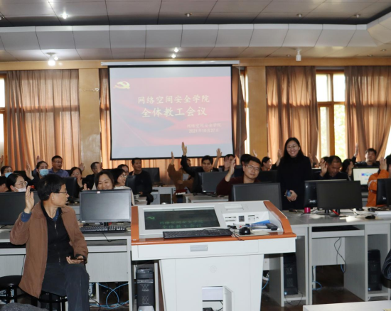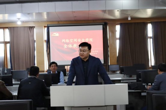 于502会议室召开全体教职工安全工作会议。学院党委书记田云飞、院长王茂励、学院党委副书记范瑞红、副院长马旭及全体教职工参加会议,田云飞主持会议。