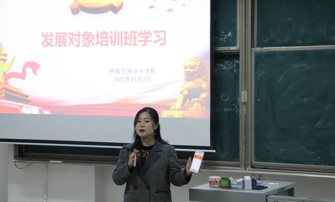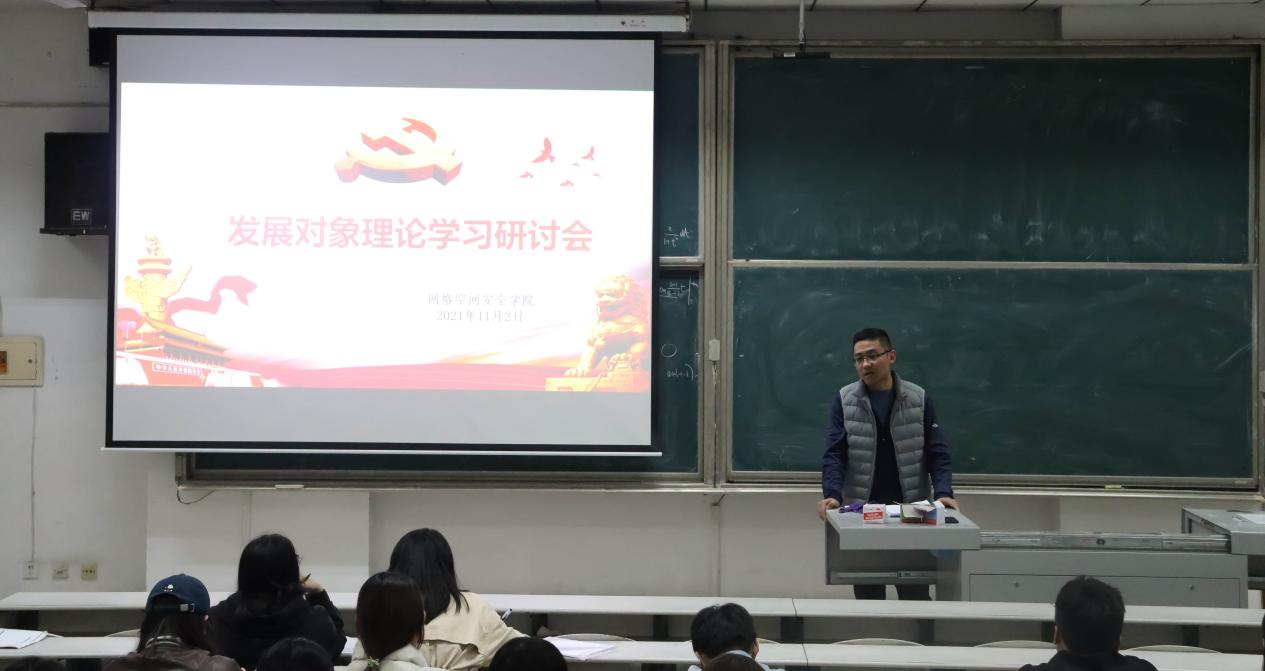 在综合楼106组织开展党员发展对象集中培训学习,本科生党支部洪亚玲、武玉龙两位老师担任主讲人。
