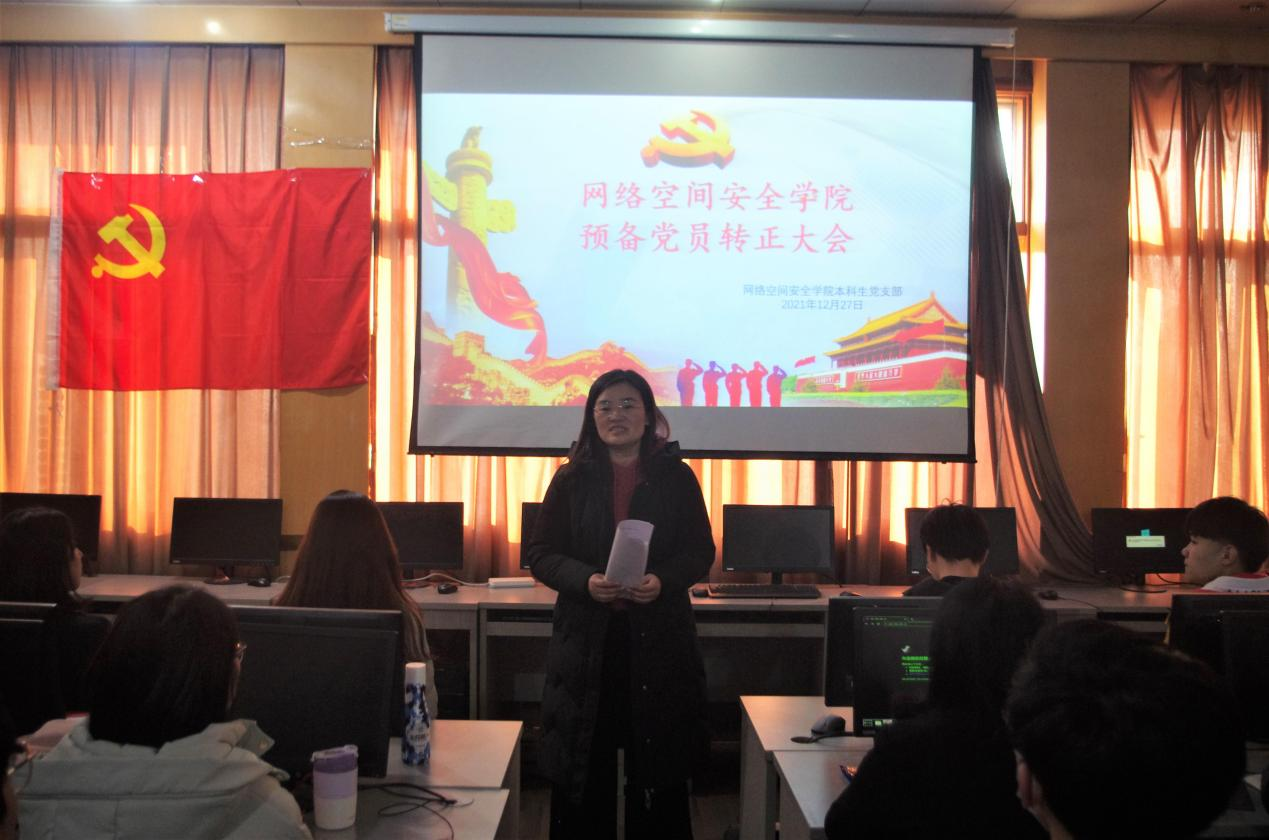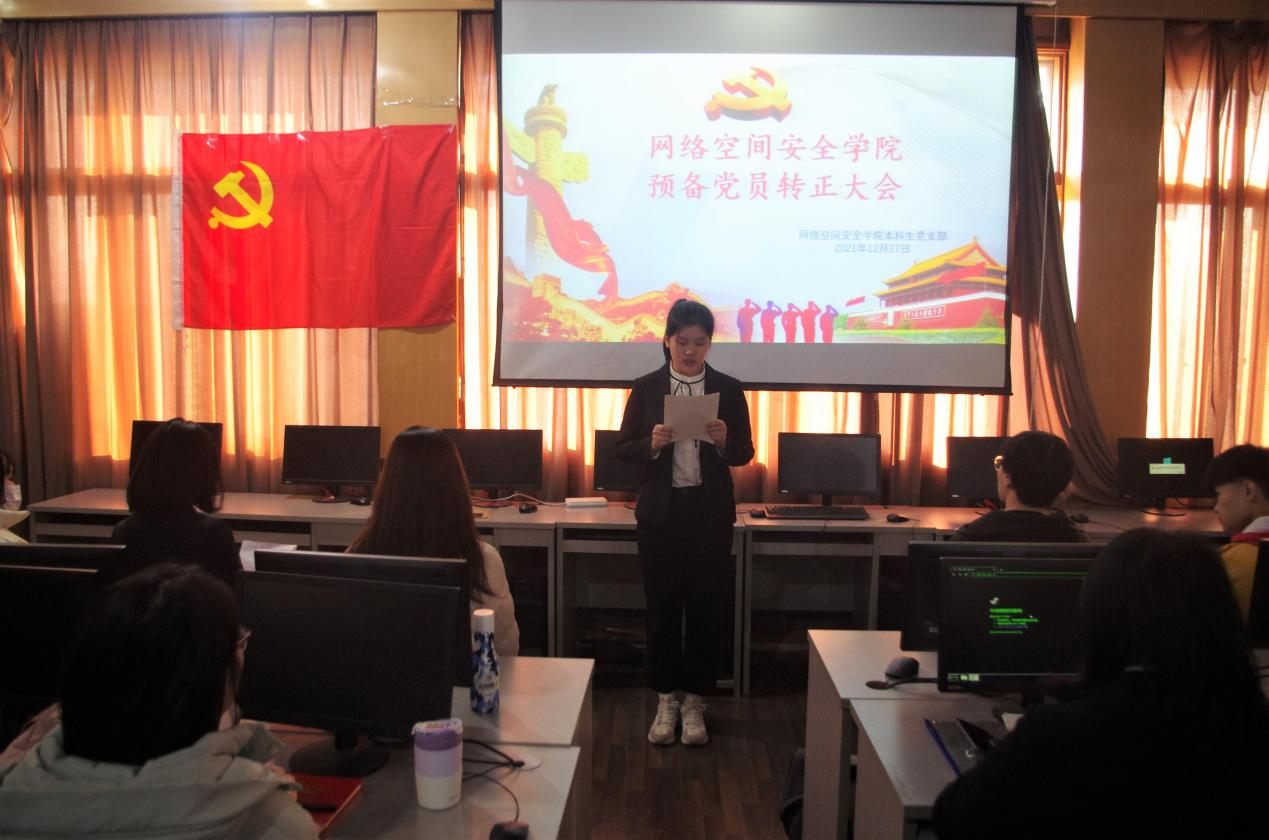 本科生党支部党员转正大会在学院502教室顺利举行。会议由本科生党支部书记武玉龙主持,学院党委副书记范瑞红和本科生党支部全体党员参加会议。