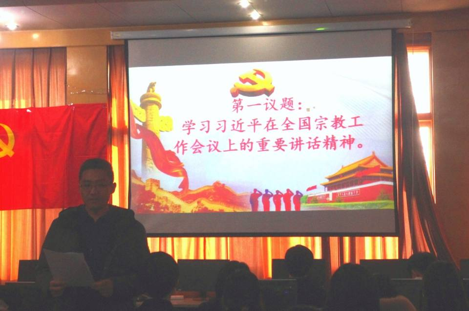 会议上,武玉龙带领全体党员进行了‘第一议题’的学习,特别强调了习近平总书记在全国宗教工作会议上的重要内容和讲话精神,习近平全面总结了宗教工作的成绩经验,深入分析了宗教工作面临的形势任务,系统阐述了新时代党的宗教工作的新思想新理念新战略,明确了坚持我国宗教中国化方向、做好新时代党的宗教工作的指导思想、战略目标、重点任务和政策举措。武玉龙强调,全体党员要全面贯彻新时代党的宗教工作理论,全面贯彻党的宗教工作基本方针,全面贯彻党的宗教信仰自由政策,自觉把思想和行动统一到习近平总书记重要讲话精神上来。