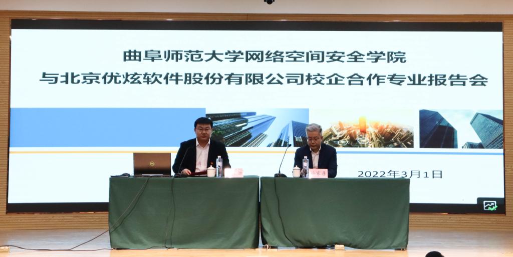 与北京优炫软件股份有限公司校企合作专业报告会于孔子会堂顺利举行。北京优炫软件股份有限公司首席运营官孙家彦为师生做了《坚持梦想》的报告。学院党委书记田云飞、院长王茂励、党委副书记范瑞红、团委书记丁允念、辅导员于媚媛以及21级全体学生参加会议,王茂励主持报告会。