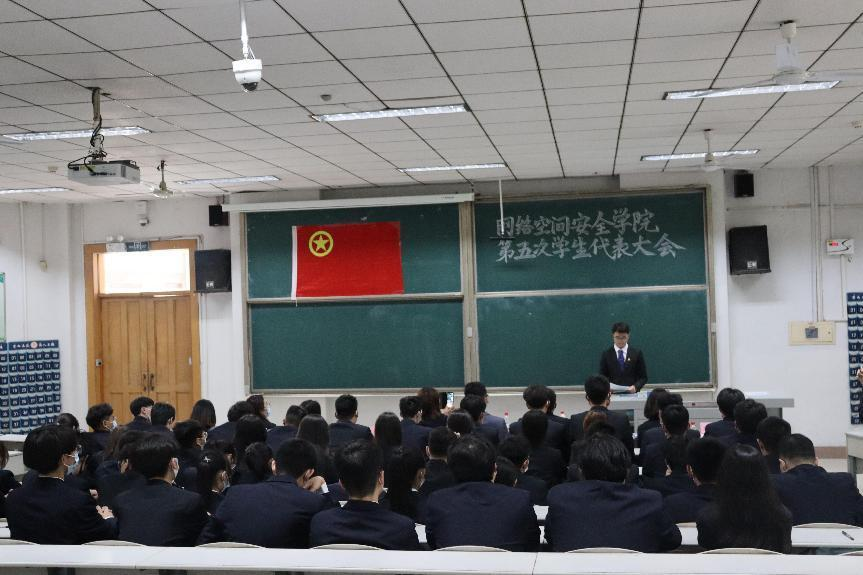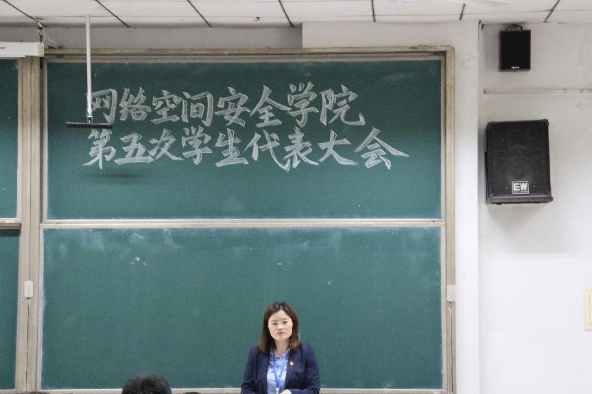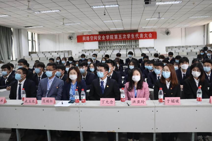 第五届学生代表大会在综合楼101顺利举行,党委副书记范瑞红,团委书记丁允念,辅导员洪亚玲、武玉龙、于媚媛出席会议,学生会主席团成员和学生代表参加会议,会议由学生会副主席王宝琛主持。