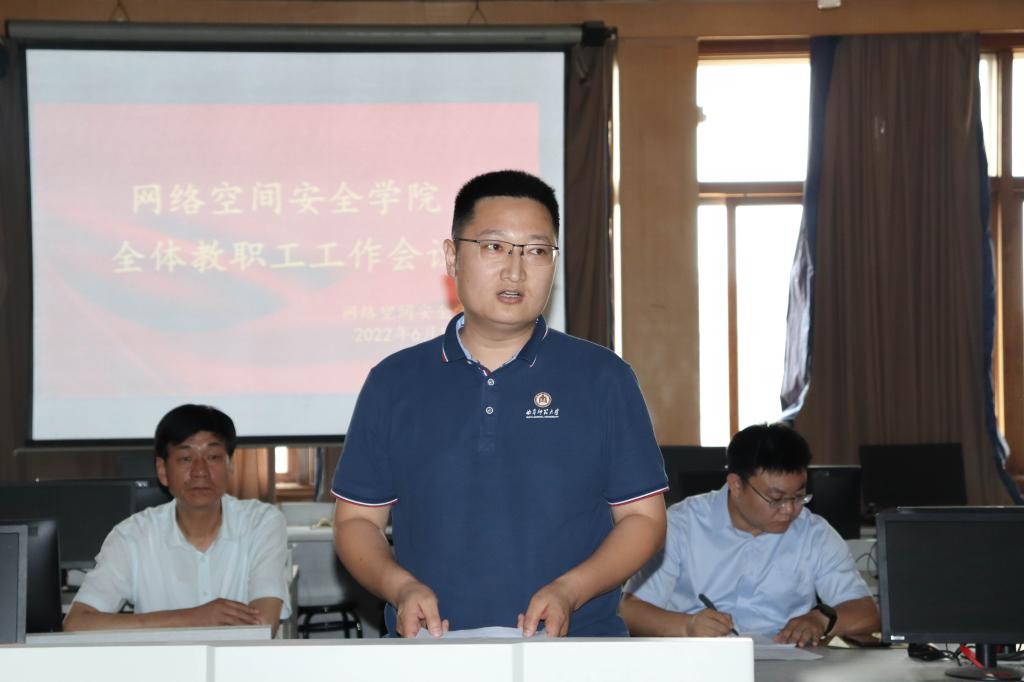 王茂励回顾了本学期工作,对近期重点工作进行了部署。针对近期工作,他提出三点要求:一是要立足自身,锤炼教学基本功。教书育人是教师的核心任务,全体教职工要不断提高教育教学能力,提升教书育人水平;二是要抓住时机,磨练科研攻坚力。科研创新能力是高校教师必备的技能,各位老师要抓住时机,争分夺秒提高科研攻坚能力;三要躬身自省,提升师德自律性。学高为师,身正为范,新时代教师更要严格要求自身,努力用自身德行感染、引领学生成长。