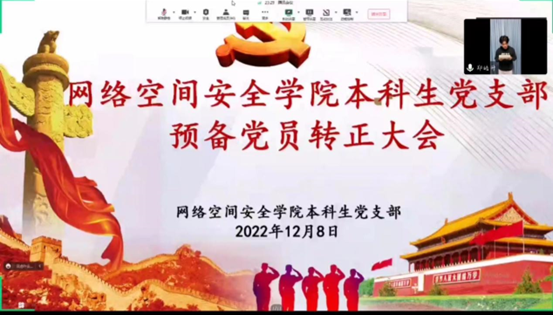 本科生党支部预备党员转正大会于线上顺利举办。本科生党支部书记武玉龙主持会议,学院本科生党支部全体教师党员及学生党员参加本次会议。