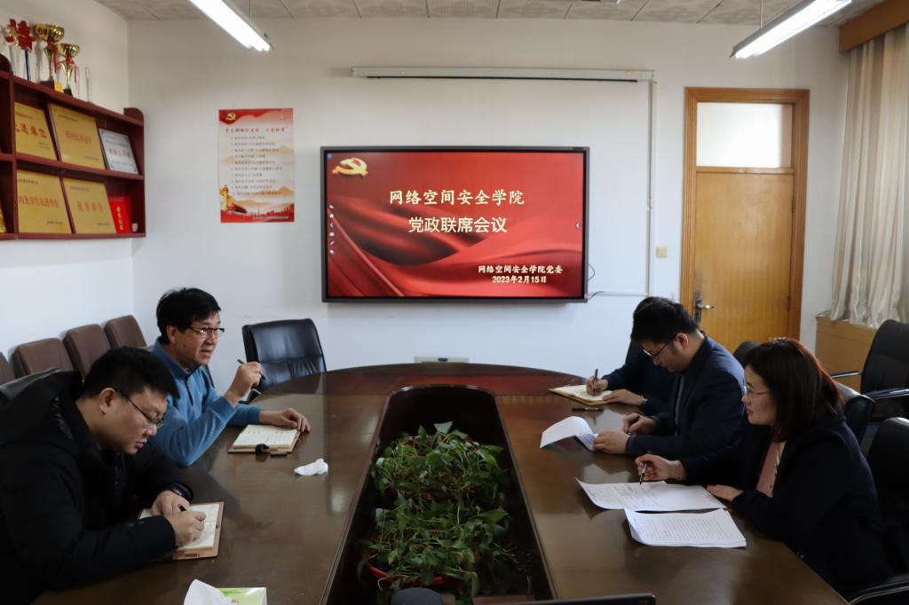 在学院会议室召开党政联席会议,传达学习学校2023年度工作部署会议精神,研究学院年度重点工作任务。会议由学院党委书记田云飞、院长王茂励共同主持,学院领导班子参加会议。