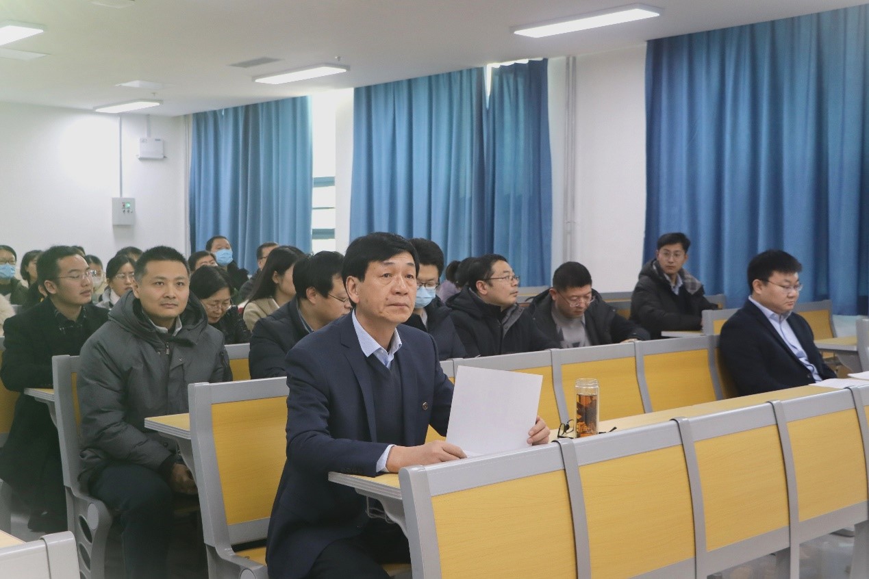 全体教职工政治理论学习会议于格物楼B221教室召开。学院党委书记田云飞,院长王茂励,党委副书记范瑞,副院长马旭及全体教职工参加会议。范瑞红担任主讲。
