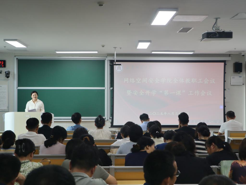 全体教职工会议暨安全开学“第一课”工作会议顺利召开。学院党委书记田云飞、院长王茂励、党委副书记范瑞红、副院长马旭、产业学院副院长刘建磊、院长助理徐娟、高鹏以及网络安全学院全体教师出席会议,田云飞主持会议。