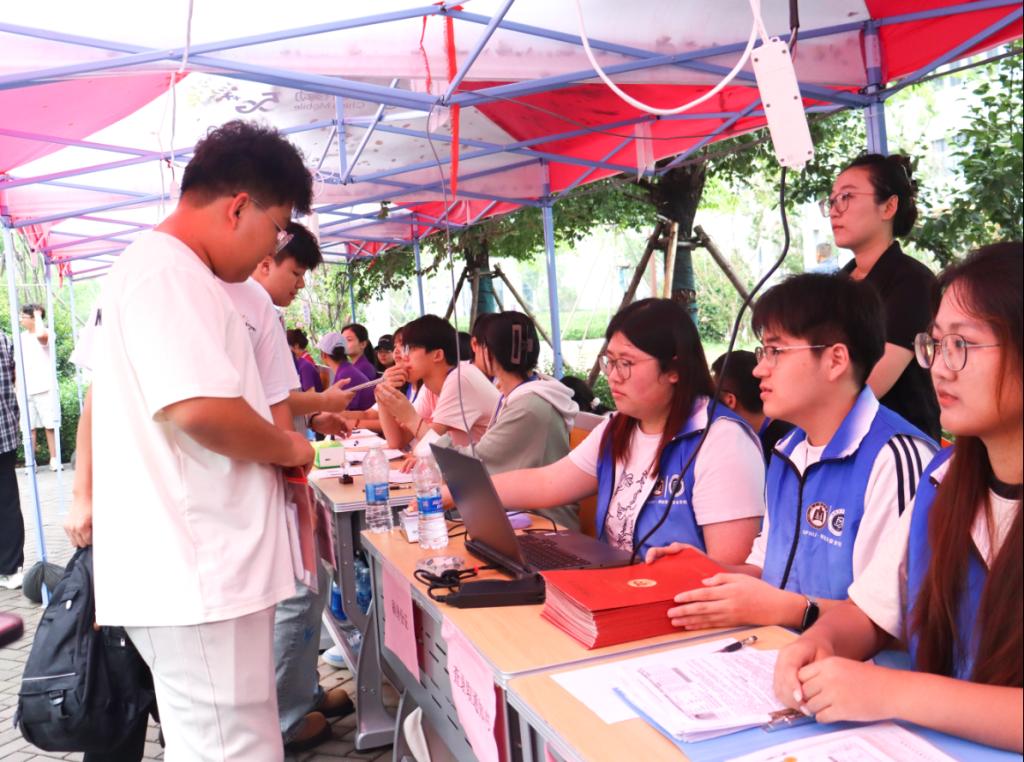 迎新工作于文渊楼北广场正式启动。学院党委书记田云飞,院长王茂励,全体辅导员,学院团委学生会成员及学生志愿者共同参与,以创新科技和暖心服务迎接2025级新生的到来。