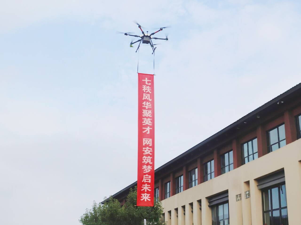 期间,悬挂有“七秩风华聚英才,网安筑梦启未来”标语的无人机在迎新现场上空穿行。据悉,此无人机自动化系统实现了三孔圣地的全景动态可视化及校园AI实景导览,新生可在虚拟与现实交融中提前熟悉校园环境。为帮助学生快速融入大学生活,迎新现场布置了温馨的横幅与多人合影KT板,营造了热烈而亲切的报到氛围。学院安排志愿者开展“一对一”新生对接,从入校引导到入住宿舍全程协助,精准服务,为新生提供温暖与支持。