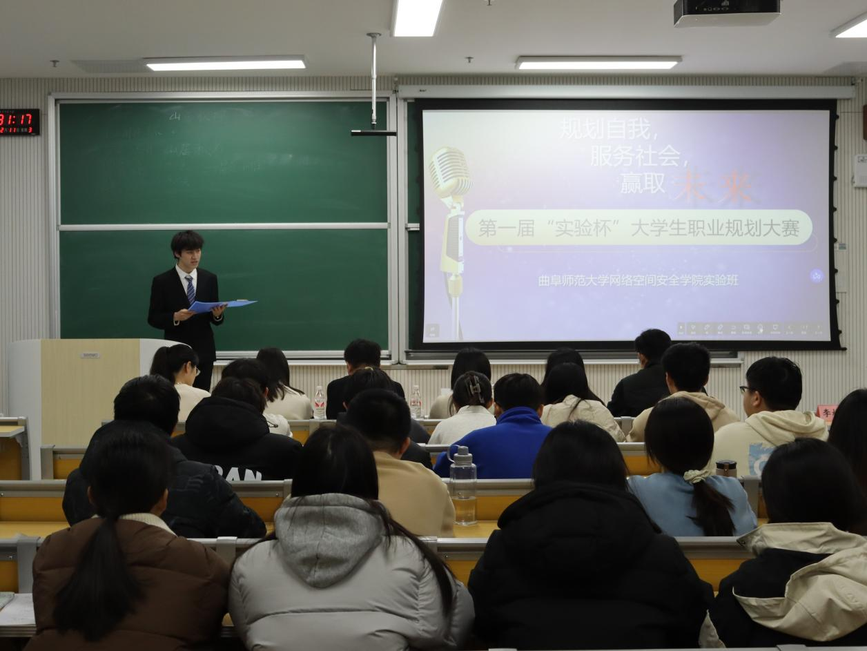 第一届“实验杯”大学生职业生涯规划指导大赛于格物楼B103教室举办。本次比赛由学生代表张轩主持,专业课教师夏涛、徐娟、李桂青、刘双、张萌,辅导员洪亚玲、赵兴卯担任评委,实验班全体同学参加。