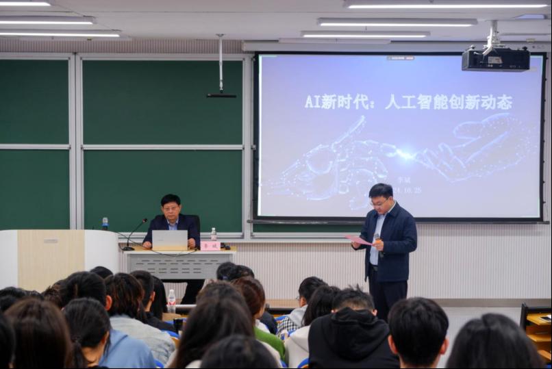 邀请山东省产教融合促进会专家委员会主任、山东鲁商联盟会专家委员会主任、山东省委党校外聘教授、山东齐鲁工业大学和山东省科学院客座教授李斌开展了以“AI新时代---人工智能创新动态”为题的研究生报告会,本次会议由王茂励院长主持,动漫疯